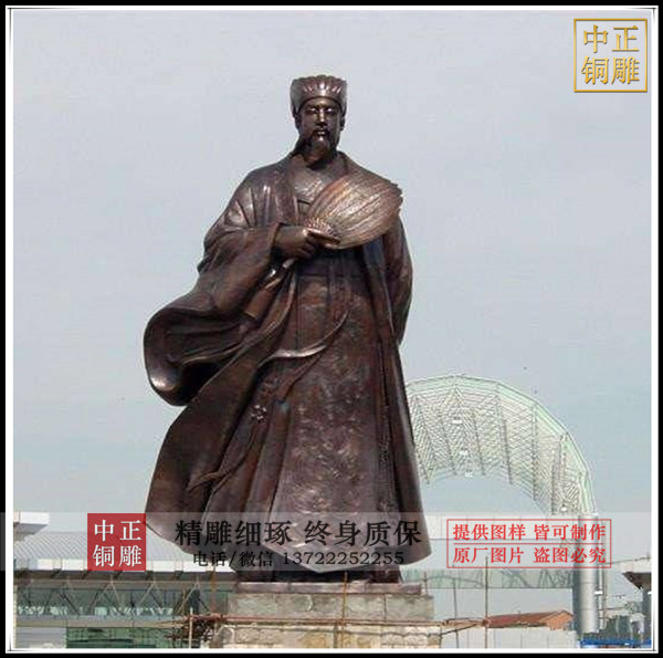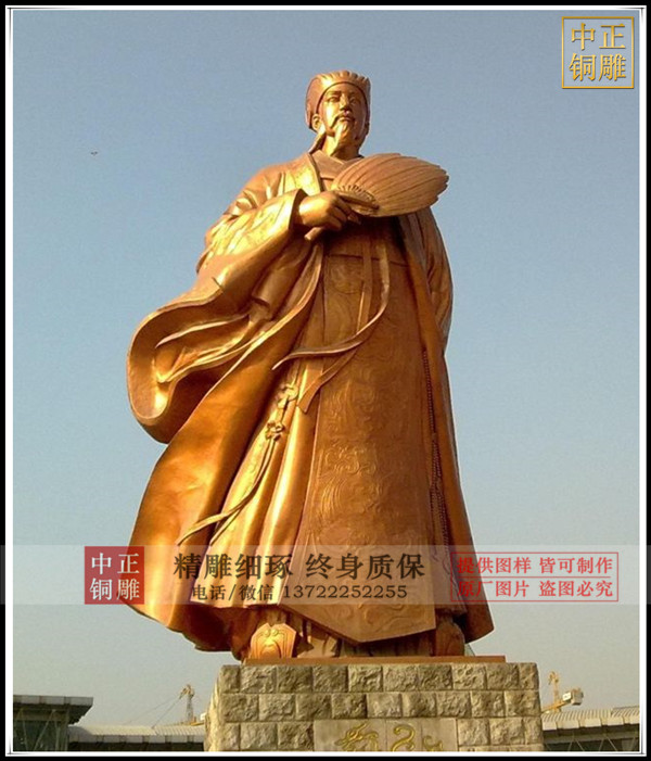 說道諸葛亮我們總是想到鞠躬盡碎死而后已,在中國人的心目中,這句話是諸葛亮的代名詞,也是后人對諸葛亮人生的高度概括與總結,是諸葛亮的精神所在,是值得我們學習的優秀品質,下面我們就欣賞一組由中正銅雕廠家制作的廣場古代人物雕塑諸葛亮。