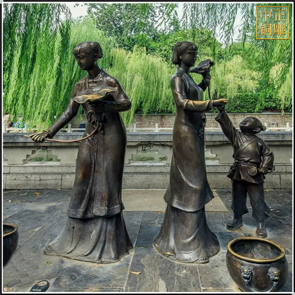 中正銅雕-大型園林景觀人物銅雕塑、大型園林景觀人物銅雕塑價格、大型園林景觀人物銅雕塑廠家,我公司集科研、開發設計、普通鑄造、一次性整體澆鑄、精密鑄造于一體。本公司技術力量雄厚,設備,不但重視中國青銅器原有的藝術風格,還繼承了文物原有的藝術品味,在繼承和發揚古老文化的同時,更深一步為新老客戶定身量制各種銅制、鐵制工藝品等產品,曾多次受到寺廟長老和美術學院教授的好評。